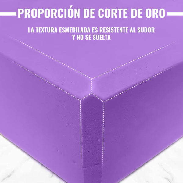 Están fabricados en EVA de alta densidad que absorbe impacto, mantiene forma y ofrece un agarre antideslizante para mayor seguridad en posturas avanzadas.