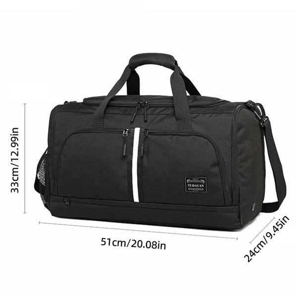 Bolsillo para zapatos y material impermeable evita que sudor y barro contaminen ropa limpia. Ideal para volver del gimnasio y guardar tenis húmedos sin preocuparse.