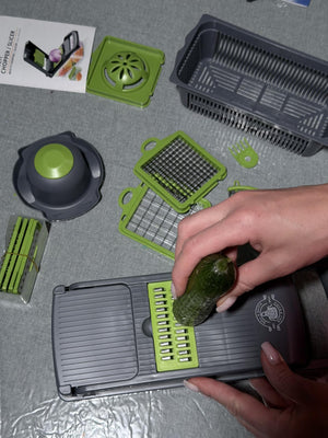 Con el Cortador Mágico de Verduras, olvídate de pasar horas cortando. Sus cuchillas intercambiables te permiten preparar tus ingredientes en minutos, haciendo que cocinar sea un placer y no una tarea tediosa.