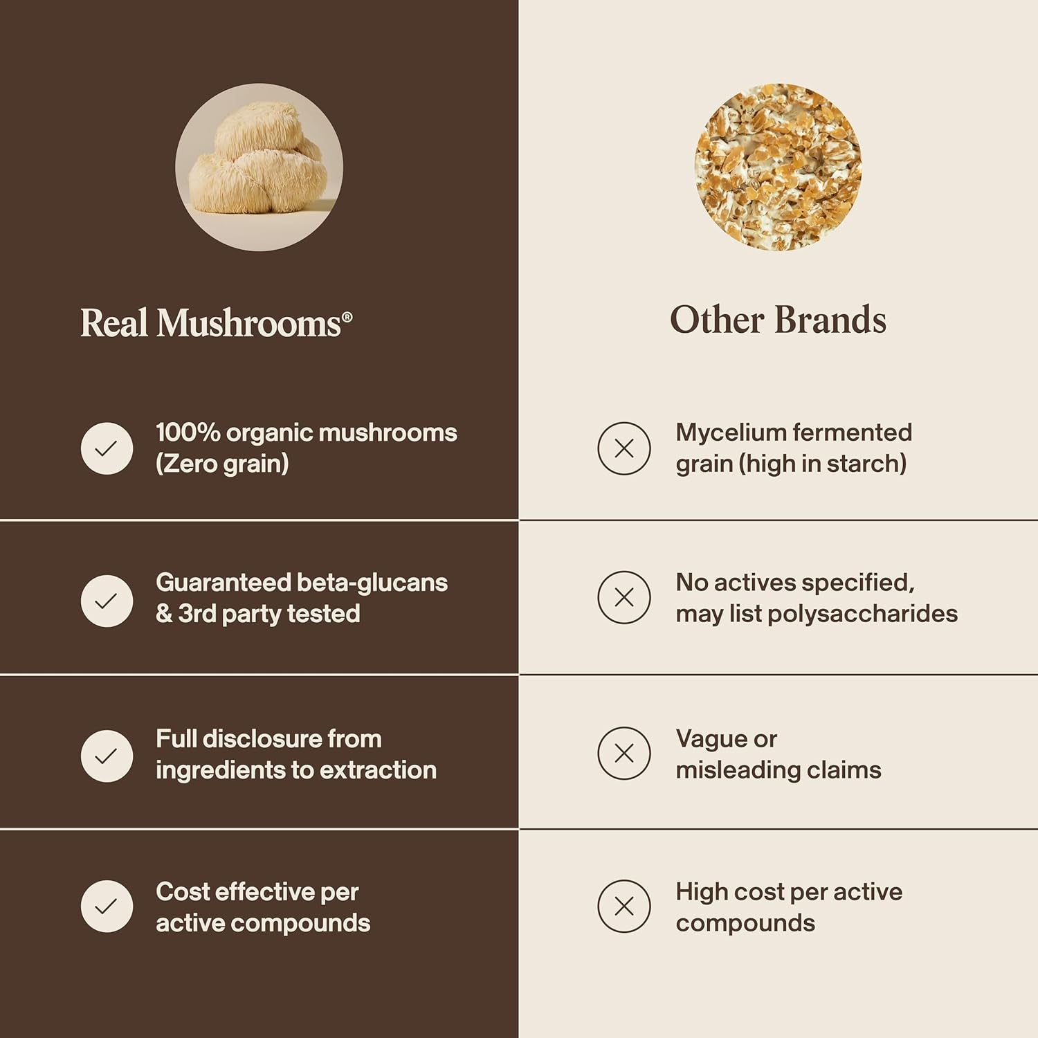 A diferencia de otros, usa cuerpos fructíferos orgánicos y betaglucanos verificados, sin granos ni rellenos, para resultados reales en enfoque y energía mental.