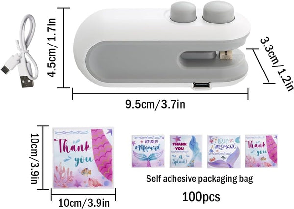 Incluye cable de datos, manual y bolsas de práctica para aprender a sellar sin complicaciones.