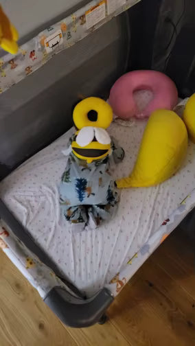 Material de algodón que mantiene fresco al bebé. Sirve como cojín o almohada para siestas rápidas y como juguete suave para entretenerlo.