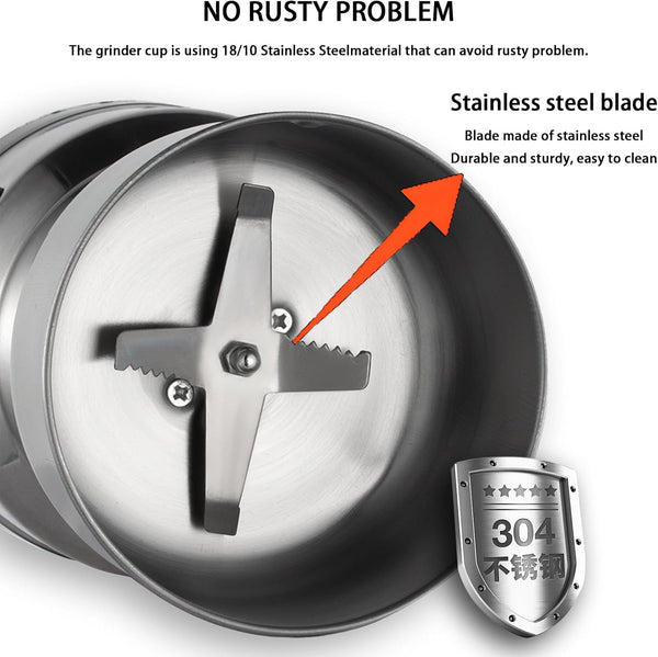 Obtén molienda consistente en segundos para un café más aromático. Las cuchillas de acero y el motor potente aseguran partículas uniformes para espresso, prensa o filtro.