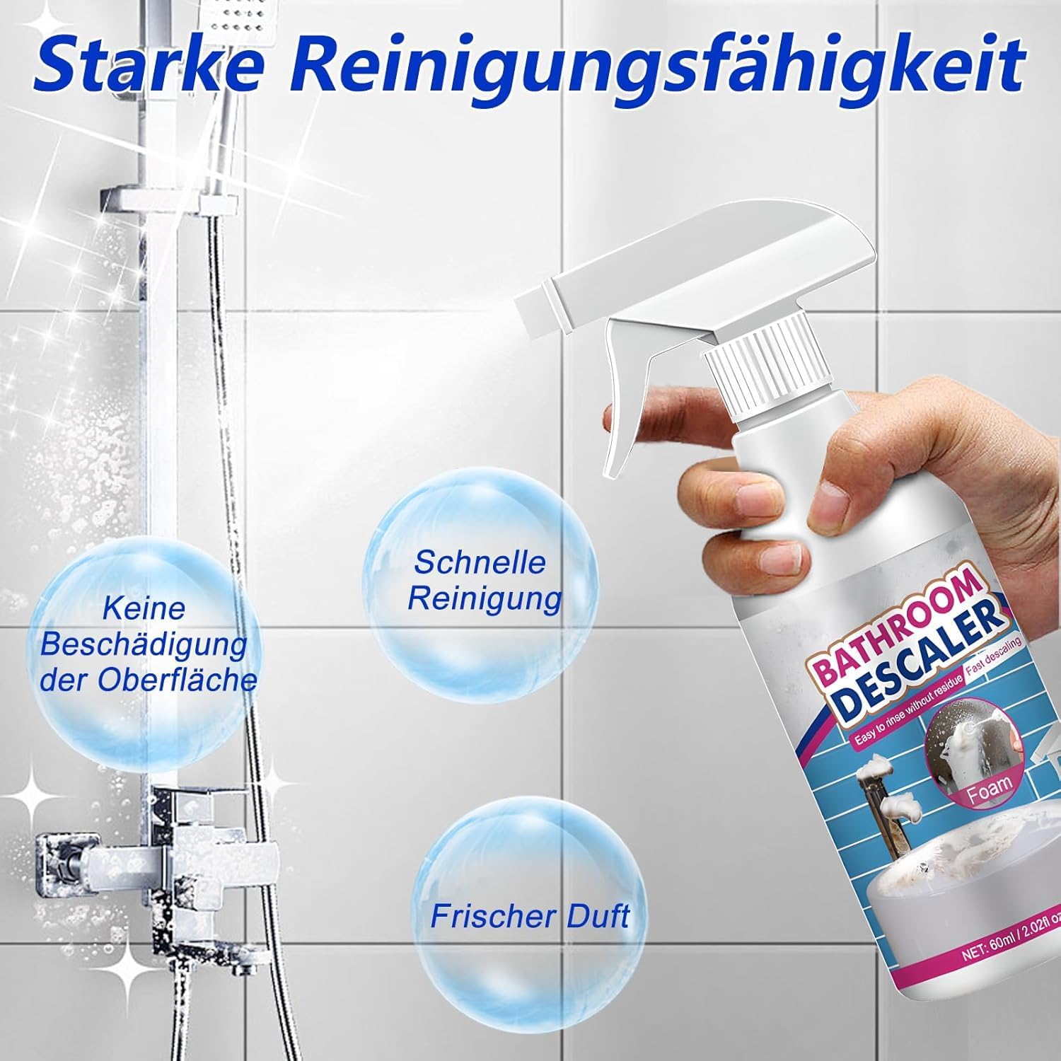 Rocía sobre la mancha, deja actuar unos minutos y frota con esponja. Repite si es necesario. El producto disuelve cal y jabón para facilitar la eliminación.