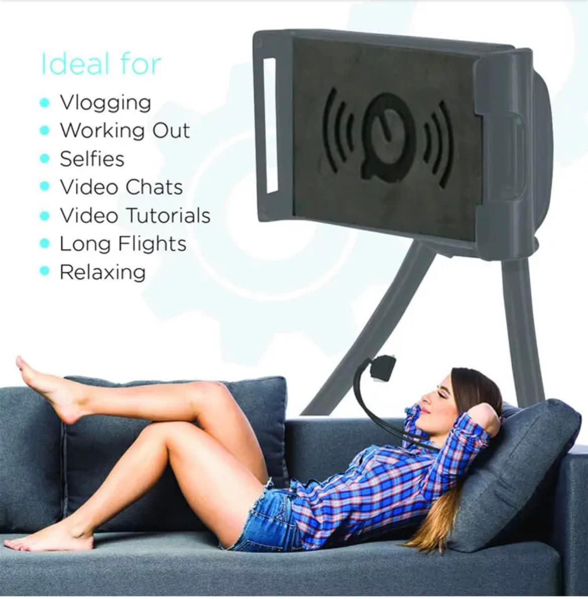 Este soporte flexible para cuello libera tus manos y evita dolor en brazos y hombros. Mantén el móvil a la altura ideal para leer, ver series o seguir rutas sin tensión ni molestias.