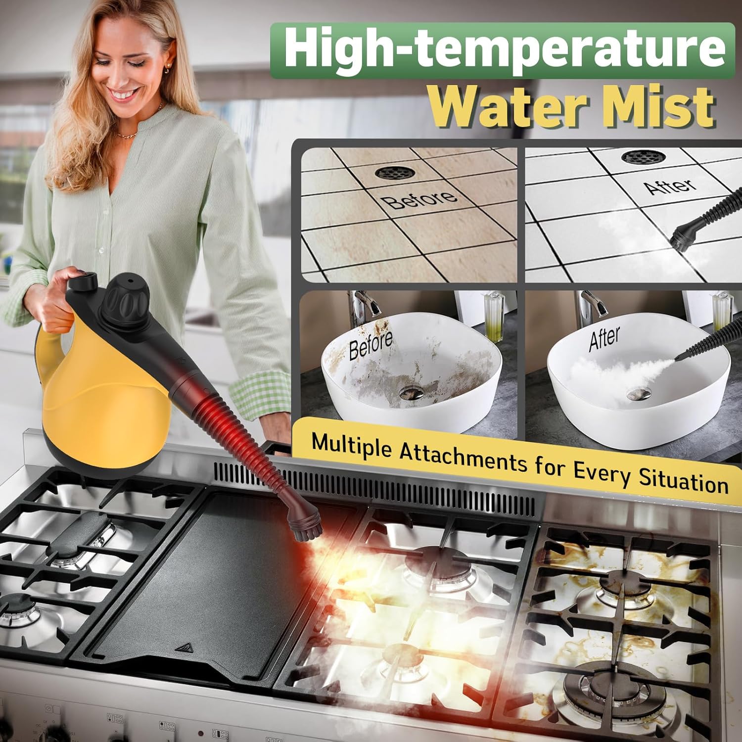 Alcanza resultados profesionales con vapor potente y accesorios, ahorrando tiempo y esfuerzo diarios en cocina, baño y coche.