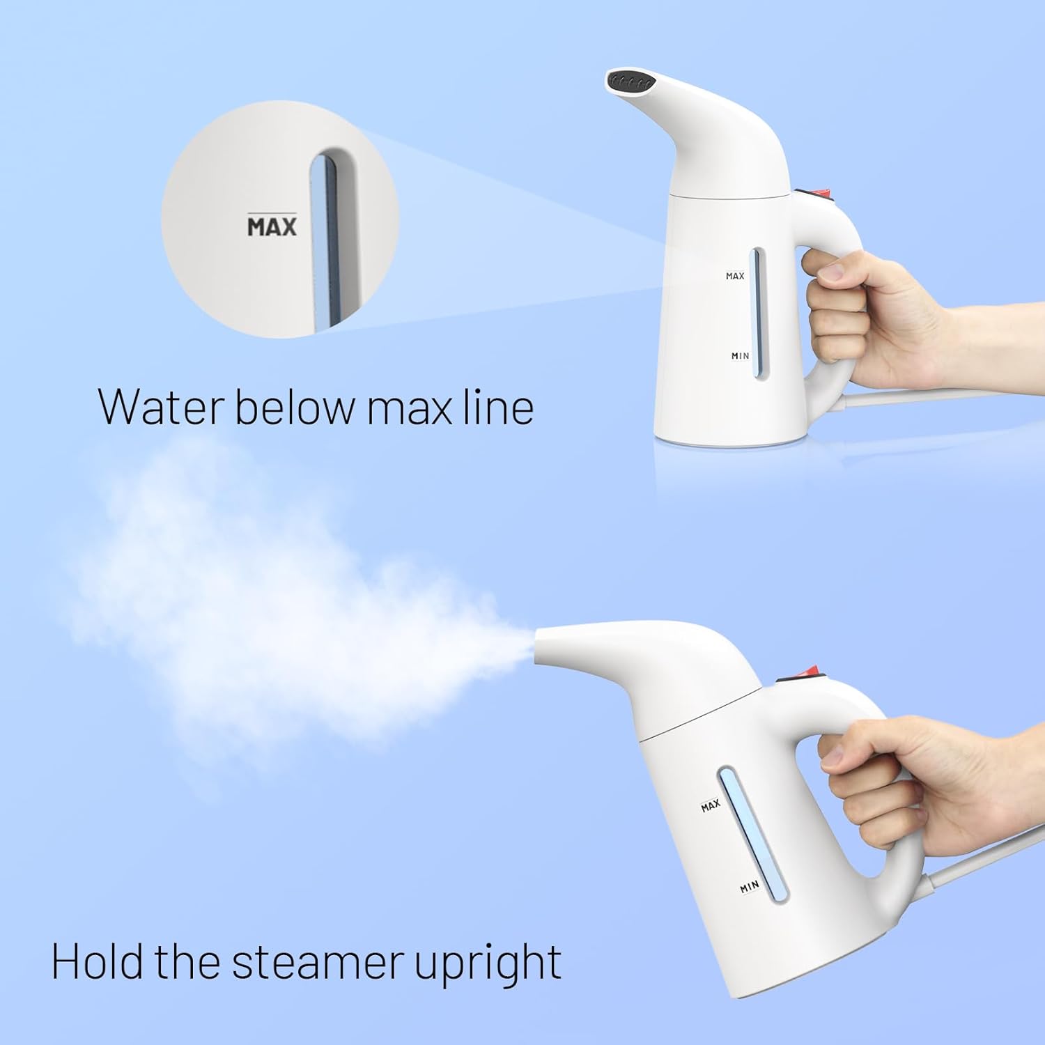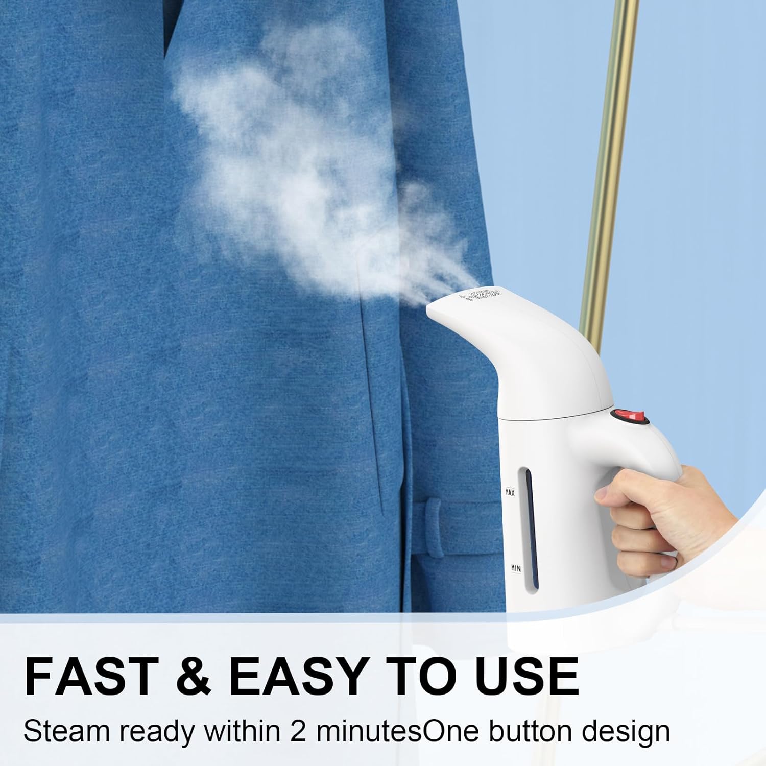 Diseño compacto y ligero pensado para viajes. Guarda el vaporizador en su funda y devuelve frescura a trajes y camisetas en segundos en cualquier hotel.