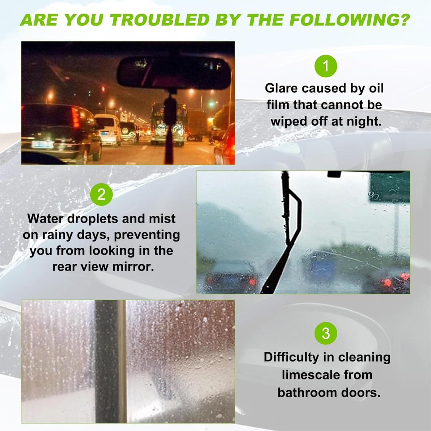 Elimina la película oleosa que causa reflejos y molestias. Recupera visión clara para conducir de noche y bajo lluvia, reduciendo el cansancio visual y el riesgo de accidentes.